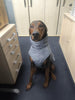 Da unser Schnitt auf Standard-Proportionen basiert, kann der Mantel bei sehr langen Dackeln etwas kürzer ausfallen und nicht bis zum Rutenansatz reichen. Wir nennen das den „Sportlichen Sitz“: Der wichtige Rumpf ist warm, der hintere Bereich bleibt frei für maximale Bewegung.